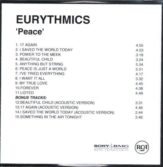 | 2:44 | I saved the world today [acoustic] | lennox/stewart |